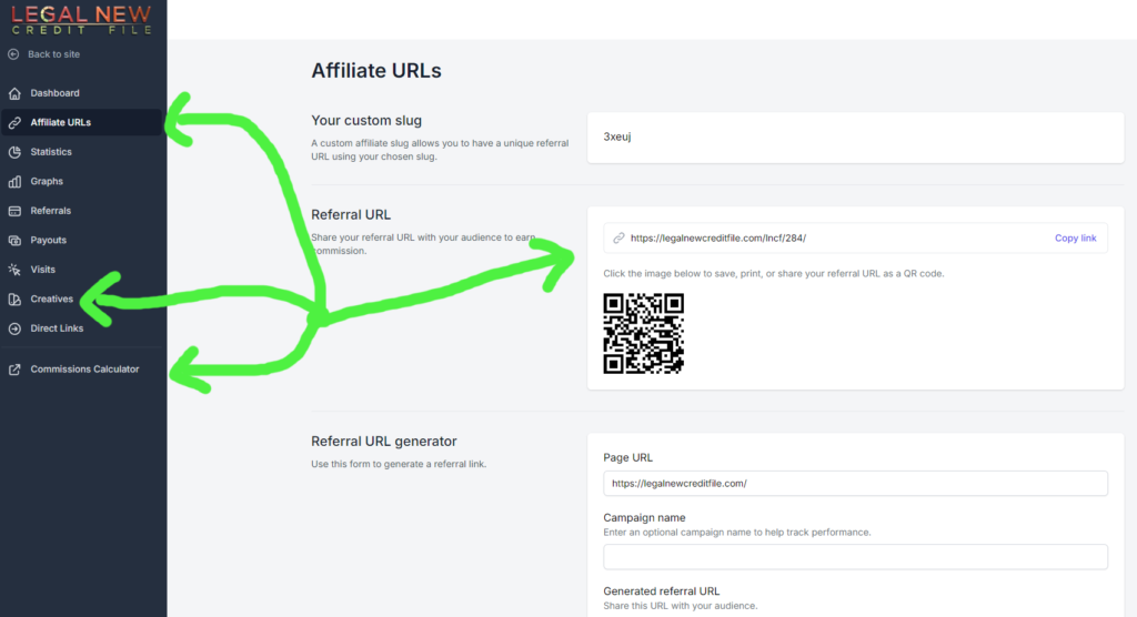 - Navigate to the “Affiliate URLs” section and copy your unique referral URL.
