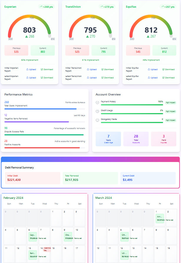 • Get our fully integrated credit repair software on your website for a one-time $500 setup fee and an ongoing $195/month. This ensures your clients access a professional, user-friendly interface under your brand.